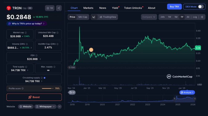 TRON plays a major role in crypto payments and DeFi and is widely known as the leading network for USDT stablecoin transfers, thanks to its low fees and fast transaction speeds. This has helped TRX maintain consistent demand even during volatile market conditions.