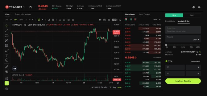 TRX/USDT trading interface on Bitunix. Source: Bitunix